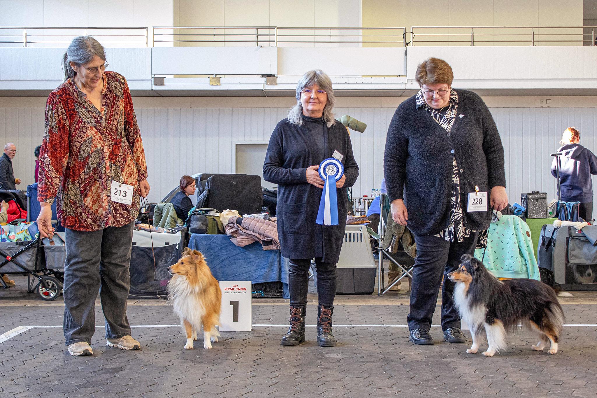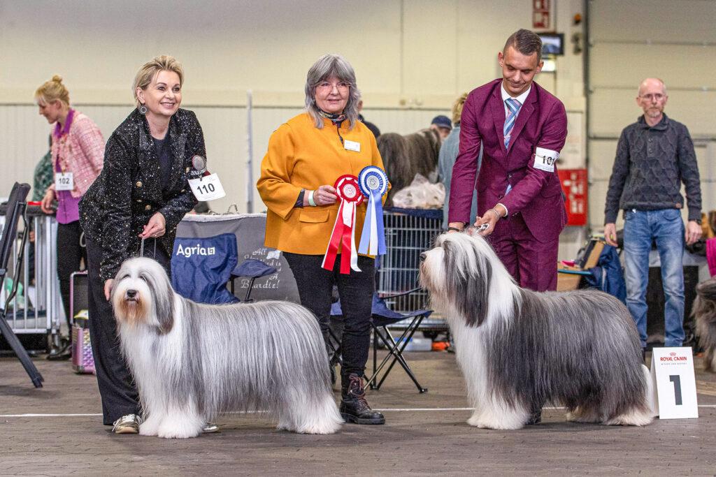 Auch im Ehren­ring kön­nen die bri­ti­schen Hüte­hun­de an bei­den Aus­stel­lungs­ta­gen über­zeu­gen. Am Sams­tag gewinnt der Old Eng­lish Sheep­dog unter Rich­ter Rolf Bles­sing die FCI-Grup­pe 1 und wird anschlie­ßend von Niko­la Smo­lic mit dem Best in Show aus­ge­zeich­net. Und als wäre das noch nicht genug, ste­hen am Sonn­tag in der Grup­pe gleich drei bri­ti­sche Ras­sen auf dem Trepp­chen – der Beard­ed Col­lie, der Old Eng­lish Sheep­dog und der Welsh Cor­gi Car­di­gan – gerich­tet von Claus-Peter Fricke.